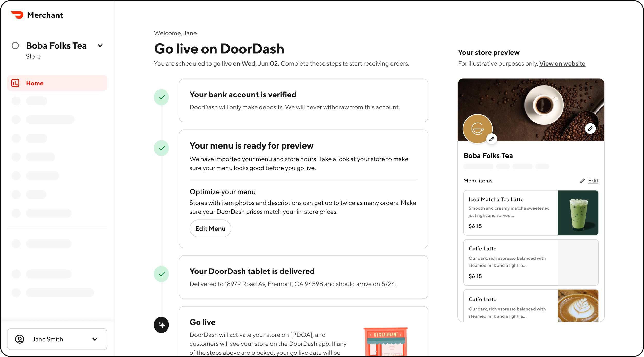 Currently, there’s no holistic view for Mx to verify their information like menu items, pricing, hours etc. So we need to prioritize allowing merchants to see their store before going live.